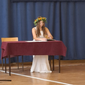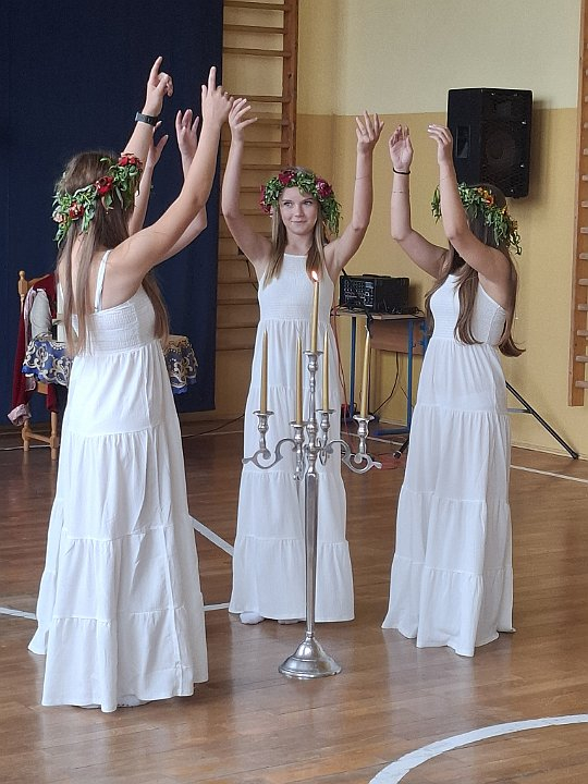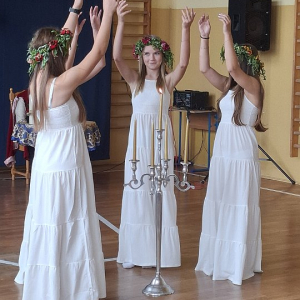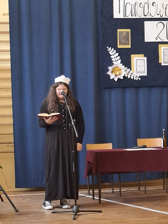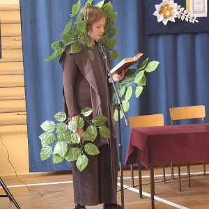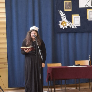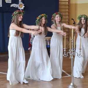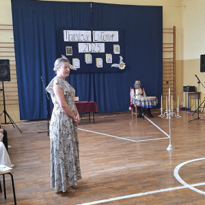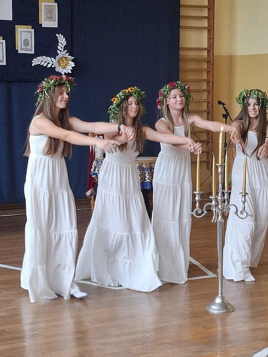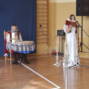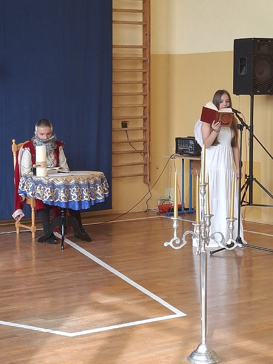 15 września 2025 roku Szkoła Podstawowa im. Kardynała Stefana Wyszyńskiego w Krupem po raz kolejny włączyła się w ogólnopolską akcję Narodowego Czytania, organizowaną pod patronatem Pary Prezydenckiej. Tegoroczna edycja poświęcona była twórczości Jana Kochanowskiego – jednego z najwybitniejszych poetów polskiego renesansu. Uroczystość rozpoczęła się w sali gimnastycznej, gdzie pani Monika Korszla, nauczycielka języka polskiego, przybliżyła sylwetkę poety oraz znaczenie jego dzieł dla polskiej kultury. Następnie głos zabrali uczniowie klasy VIII, którzy wspólnie czytali wybrane fraszki i pieśni. Ósmoklasiści z ogromnym zaangażowaniem przygotowali interpretacje utworów Kochanowskiego oraz piękne stroje. Ich wystąpienia wzbudziły wiele emocji i skłoniły do refleksji nad uniwersalnością przekazu poety. Na szczególne brawa zasługuje taniec uczennic klasy VII i VIII przygotowany pod kierunkiem pani Alicji Tomasik-Matysiak do „Pieśni świętojańskiej o Sobótce”. Spotkanie skłoniło nas wszystkich do wspólnej refleksji o wartościach zawartych w poezji Kochanowskiego. Dzięki zaangażowaniu społeczności szkolnej, nasza szkoła na chwilę zamieniła się w symboliczny Czarnolas, w którym słowa poety zabrzmiały na nowo. Serdecznie dziękujemy wszystkim uczestnikom za udział w tym wyjątkowym wydarzeniu. Narodowe Czytanie 2025 było nie tylko lekcją literatury, ale także pięknym świadectwem wspólnego przeżywania kultury.