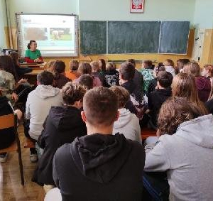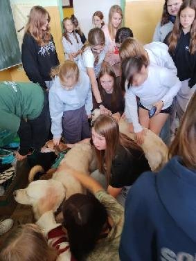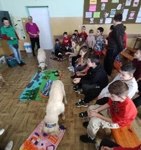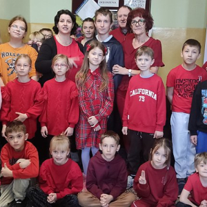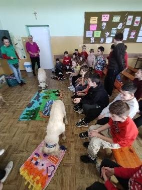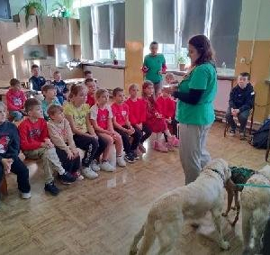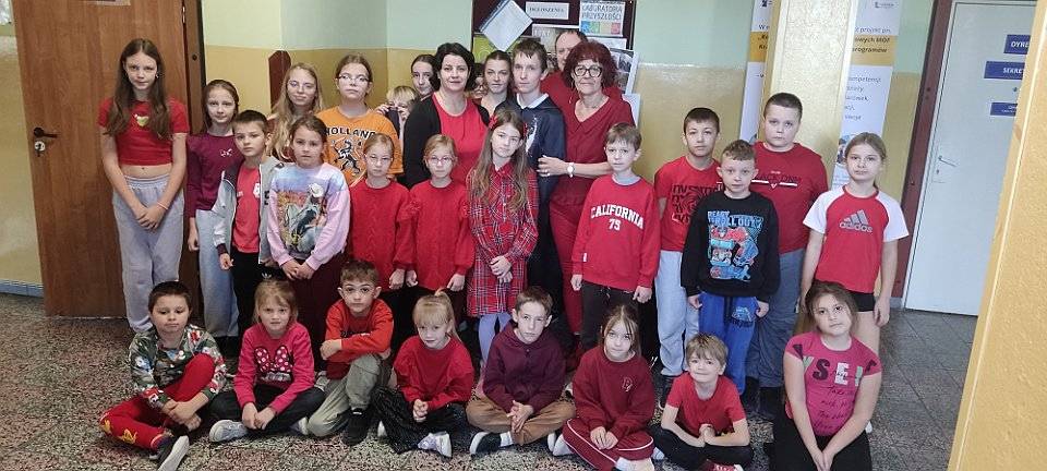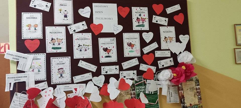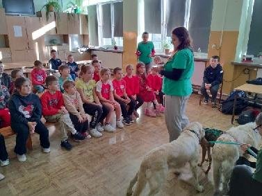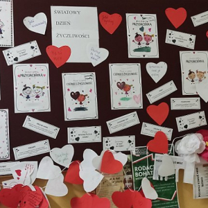 19 listopada 2025 roku w naszej szkole obchodziliśmy Światowy Dzień Życzliwości połączony z odwiedzinami pań z Hospicjum Starego Psa u Psiej Mamy. Święto ma na celu promowanie życzliwości, dobrych uczynków i pozytywnych relacji. Uczniowie kolorowanki rysunki, uzupełniali miłymi słowami serduszka, a następnie zawieszali na sznurek i na tablicę szkolną. Ponadto mówili miłe słowa wybranej osobie. Każdy gest nawet mały sprawiał, że na ustach uczniów pojawiał się uśmiech. Ciepłe słowo czy miły gest potrafiły zmienić cały dzień. Panie z hospicjum przyjechali z czterema czworonożnymi przyjacielami. Opowiadali o porzuconych psach, opiece nad nimi. Fundacja ta to miejsce dla starych, niedołężnych, schorowanych, niewidomych psów. Nasza szkoła włączyła się w zbiórkę karmy dla tych piesków potrzebujących, a dzięki uprzejmości pani z hospicjum mogliśmy posłuchać wykładu o funkcjonowaniu takiego miejsca.